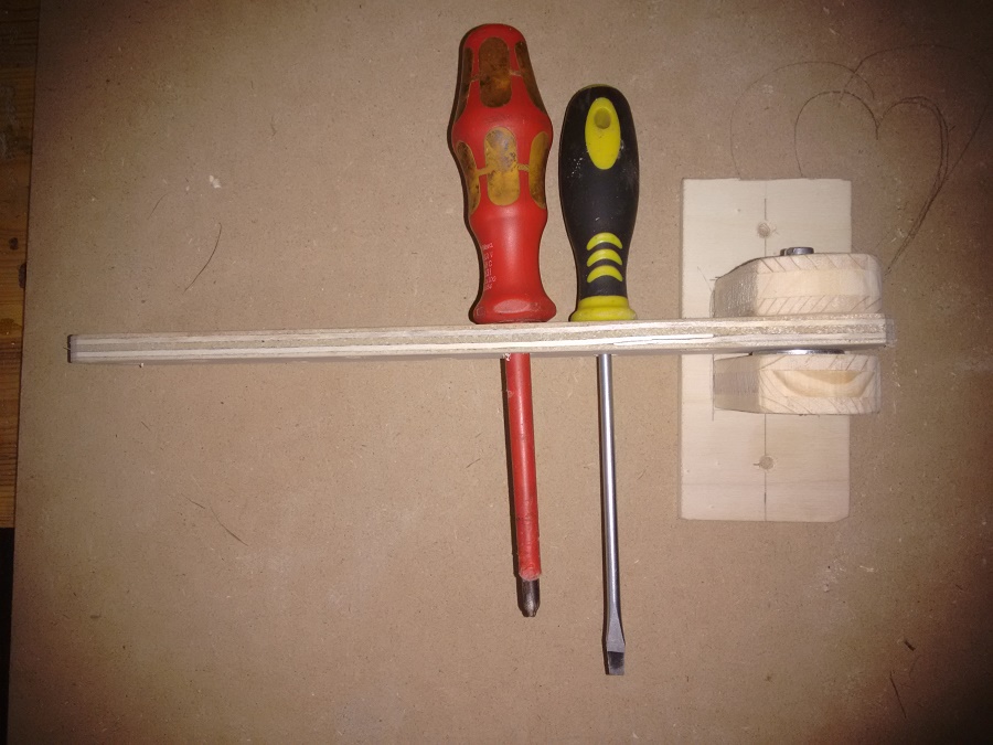 Angegebene Masseinheiten sind nur Beispiel ,Lochabstand in Pos 3 ist von Loch zu Loch ca.35 mm ,bei größeren Schraubenziehern ist wesentlich mehr Abstand nötig.Lochgröße ist 8 mm.