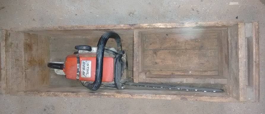Kiste ist für eine Kettensäge mit 37 Zentimeter Schwert ,bei längeren Schwertern und stärkeren Sägen muss auch die